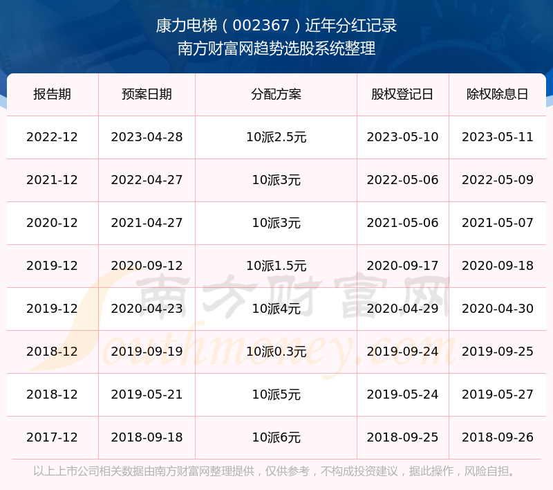 二、康力电梯002367行业分红排名