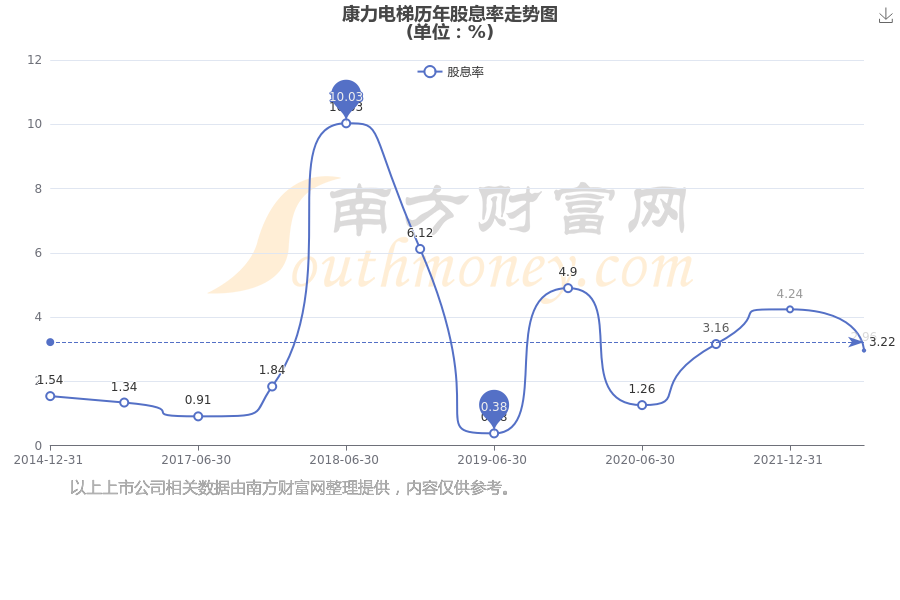 近年康力电梯年度股息率走势如下图:
