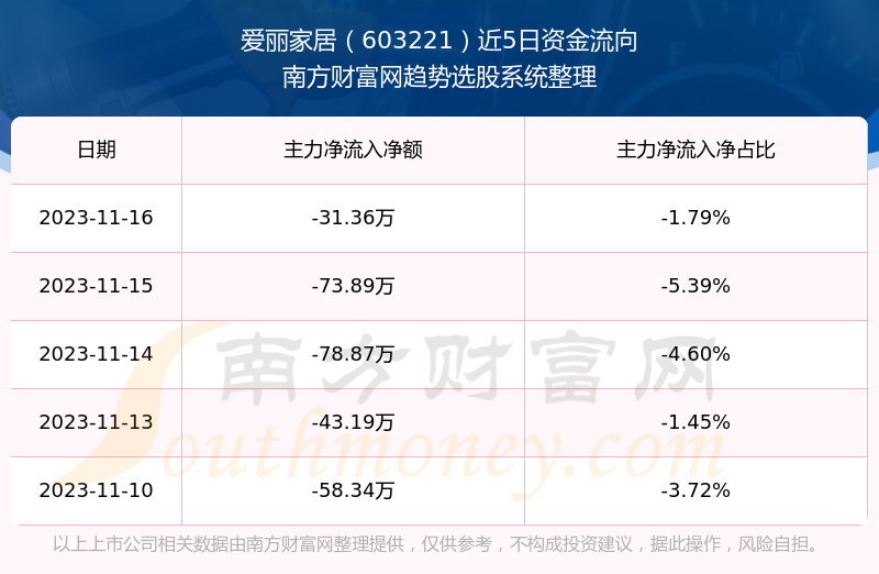 二、爱丽家居(603221)近期盘面、资金面情况