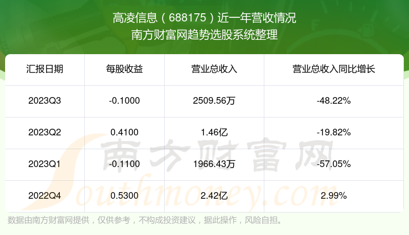高凌信息股票近一年营收情况如下表: