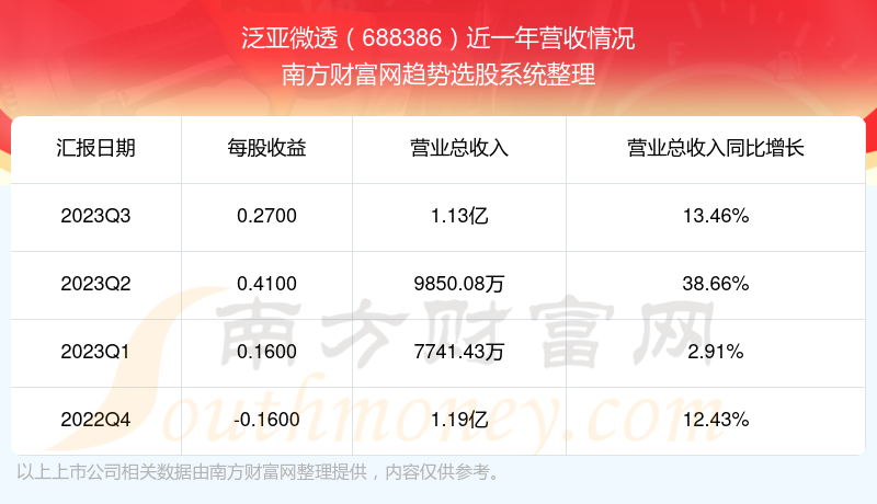 泛亚微透股票近一年营收情况如下表: