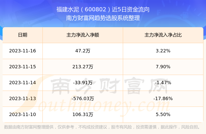 二、福建水泥(600802)近期盘面、资金面情况