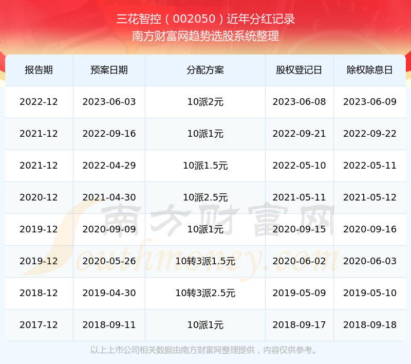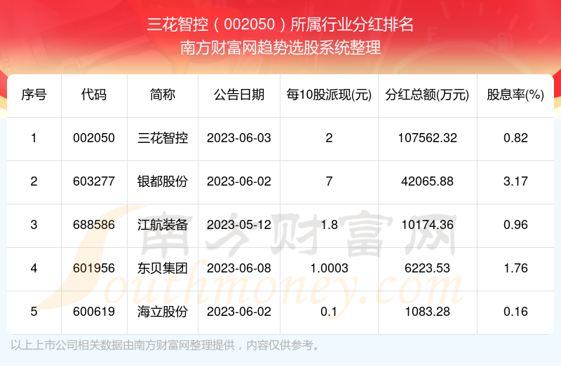二、三花智控002050行业分红排名