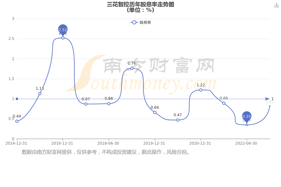 近年三花智控年度股息率走势如下图: