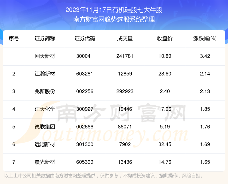 以上就是网络对在线配资网站 【盘后整理】有机硅股2023年11月17日七大牛股一览的解读(https://www.youge168.com/news-pzhq/50377.html)希望可以帮助您。