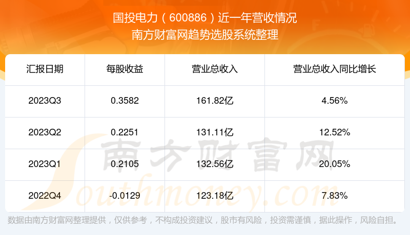 按照南方财富网趋势选股系统统计,该股所属板块为电力板块,该板块共有146只股票,国投电力2023第三季度营收在该板块中排名为第16名,该板块2023第三季度营收排名前十的股票如下表: