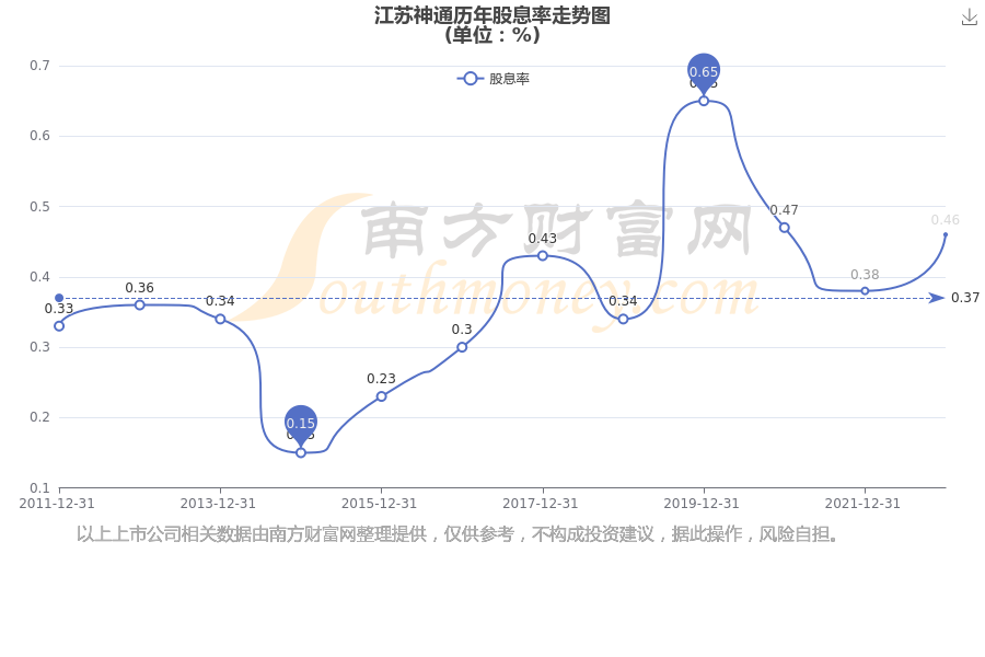 近年江苏神通年度股息率走势如下图: