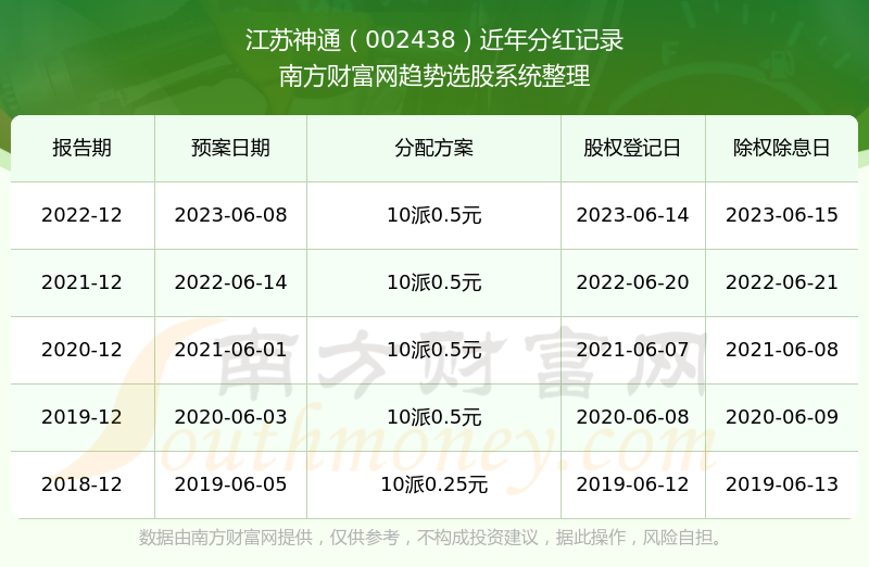 一、江苏神通(002438)股票分红记录