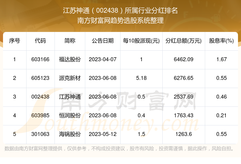 二、江苏神通002438行业分红排名