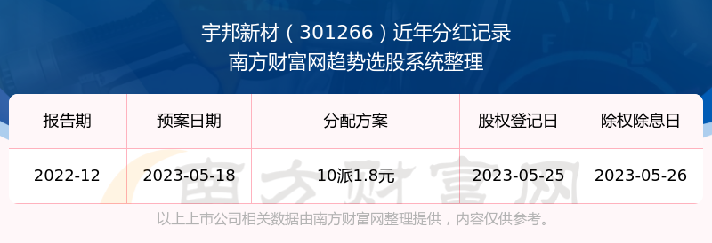 以上就是网络对配资查询 宇邦新材301266分红如何?所属行业股票分红排名一览的解读(https://www.youge168.com/news-pzhq/50482.html)希望可以帮助您。
