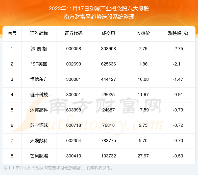 以上就是网络对配资查询 数据复盘:动漫产业概念股八大熊股(2023年11月17日)的解读(https://www.youge168.com/news-pzhq/50512.html)希望可以帮助您。