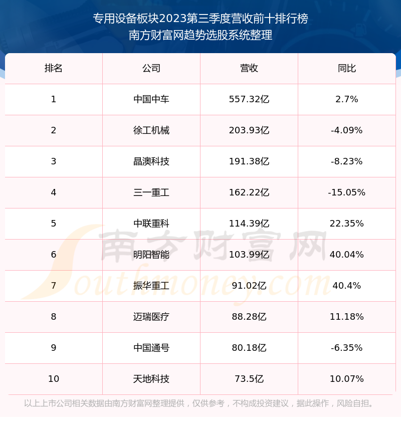 按照南方财富网趋势选股系统统计,该股所属板块为专用设备板块,该板块共有434只股票,德林海2023第三季度营收在该板块中排名为第434名,该板块2023第三季度营收排名前十的股票如下表: