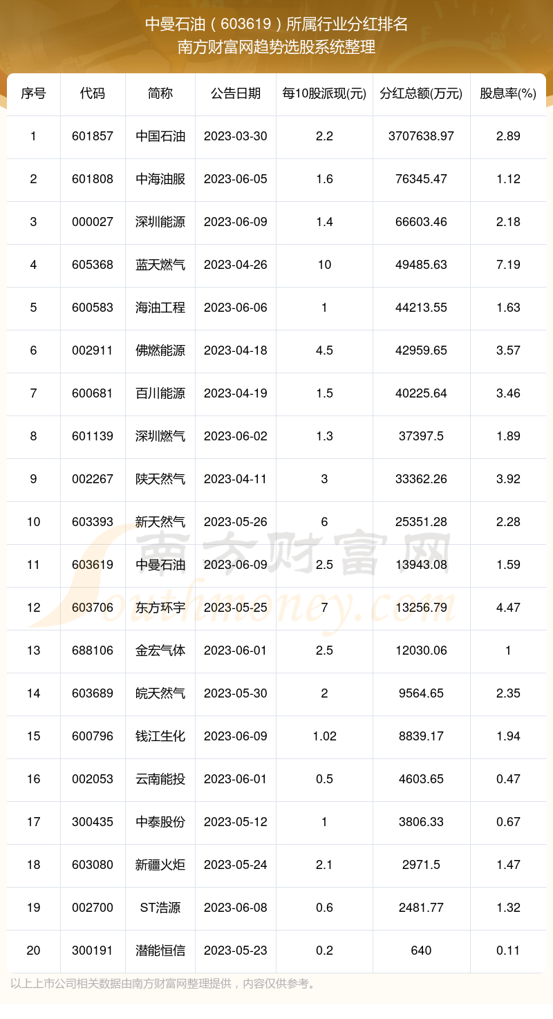 按照南方财富网趋势选股系统统计,中曼石油所属行业为油气设服行业,油气设服行业分红排名情况如下表: