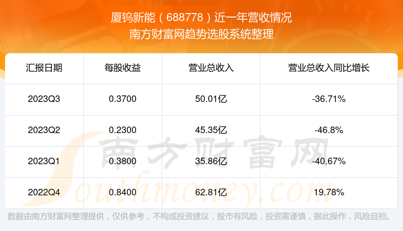 厦钨新能股票近一年营收情况如下表: