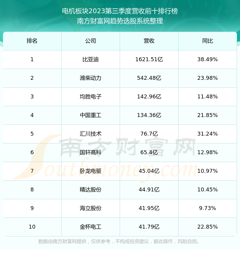 按照南方财富网趋势选股系统统计,该股所属板块为电机板块,该板块共有82只股票,神力股份2023第三季度营收在该板块中排名为第60名,该板块2023第三季度营收排名前十的股票如下表: