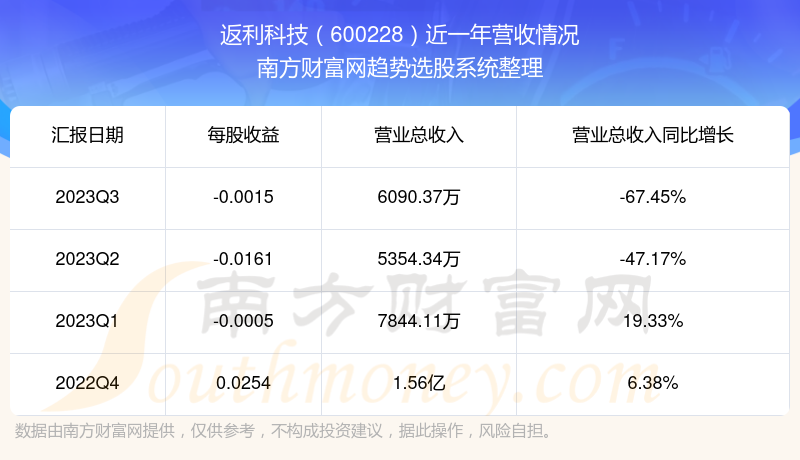 一、返利科技(600228)股票营收情况