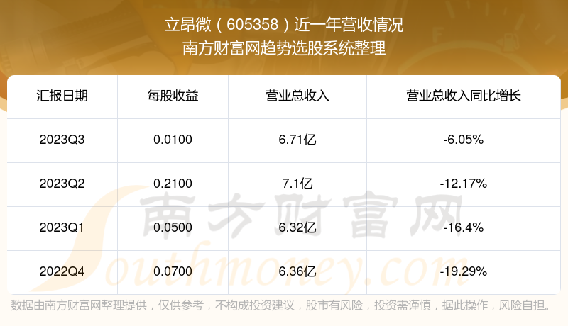 立昂微股票近一年营收情况如下表: