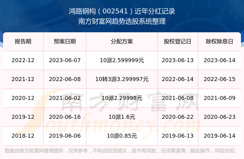 以上就是网络对正规配资平台 鸿路钢构002541近年分红情况(所属行业分红排名)的解读(https://www.youge168.com/news-pzhq/50757.html)希望可以帮助您。