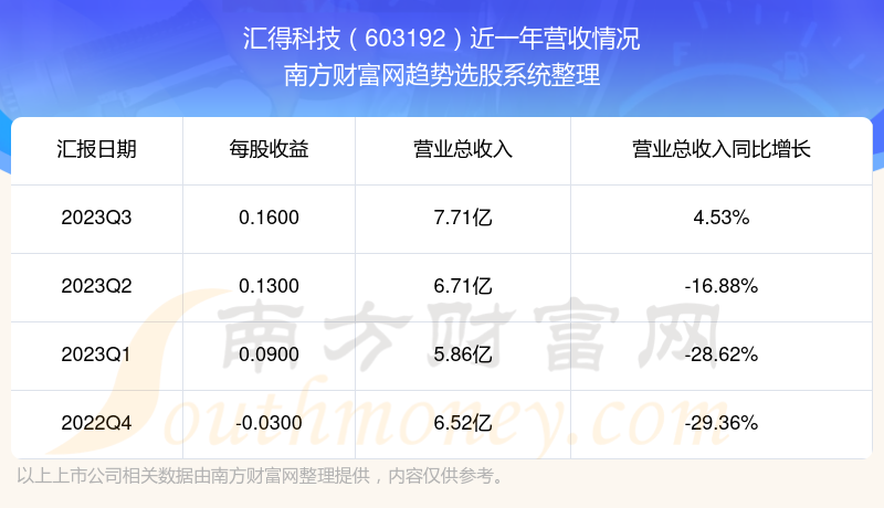汇得科技股票近一年营收情况如下表: