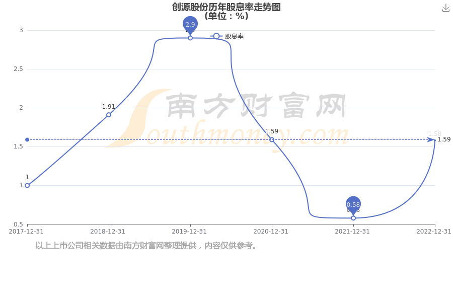 创源股份最新一次公布的分红方案为10派1.5元。本次权益分派股权登记日为2023年5月25日,除权除息日为2023年5月26日,派息日为2023年5月26日。