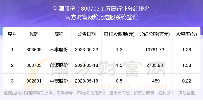 以上就是网络对配资 创源股份300703历史分红情况(所属行业股票分红排名)的解读(https://www.youge168.com/news-pzhq/50796.html)希望可以帮助您。