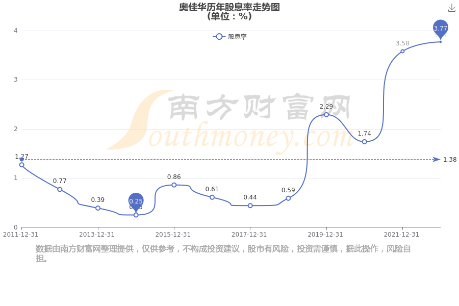 近年奥佳华年度股息率走势如下图: