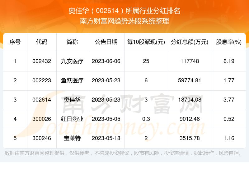 二、奥佳华002614行业分红排名
