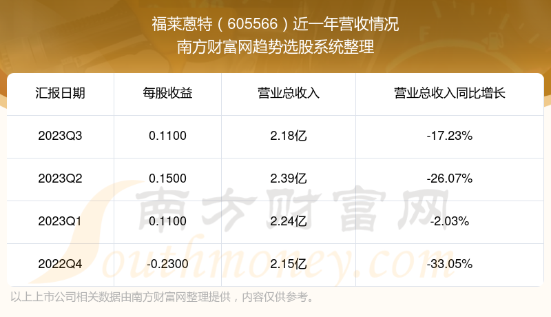 福莱蒽特股票近一年营收情况如下表: