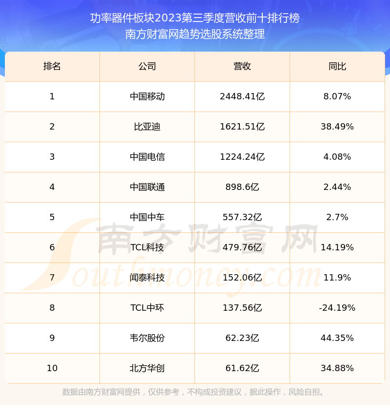 按照南方财富网趋势选股系统统计,该股所属板块为功率器件板块,该板块共有44只股票,东微半导2023第三季度营收在该板块中排名为第44名,该板块2023第三季度营收排名前十的股票如下表: