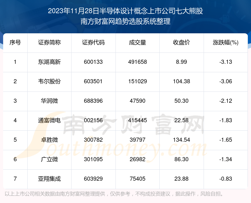 以上就是网络对财富牛配资 【盘后整理】半导体设计概念上市公司2023年11月28日七大熊股名单的解读(https://www.youge168.com/news-pzhq/50964.html)希望可以帮助您。