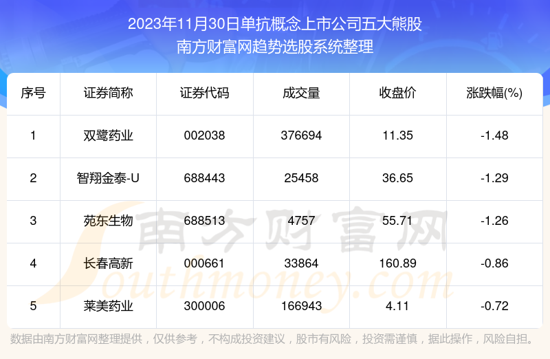 以上就是网络对10倍配资 【盘后整理】单抗概念概念上市公司2023年11月30日五大熊股(附股)的解读(https://www.youge168.com/news-pzhq/51136.html)希望可以帮助您。