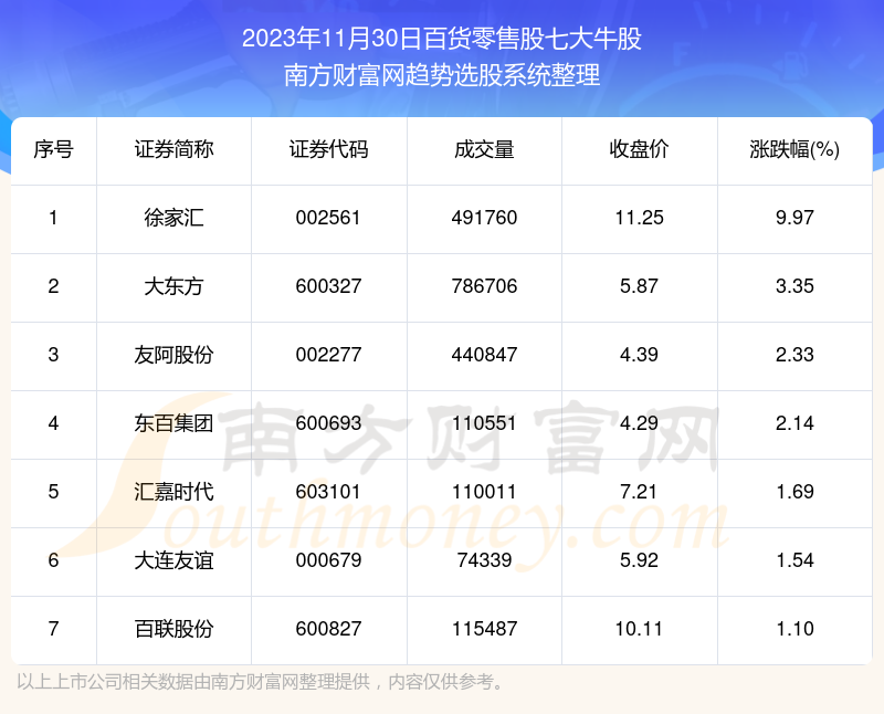 以上就是网络对股市配资 【数据复盘】百货零售股2023年11月30日七大牛股名单的解读(https://www.youge168.com/news-pzhq/51154.html)希望可以帮助您。