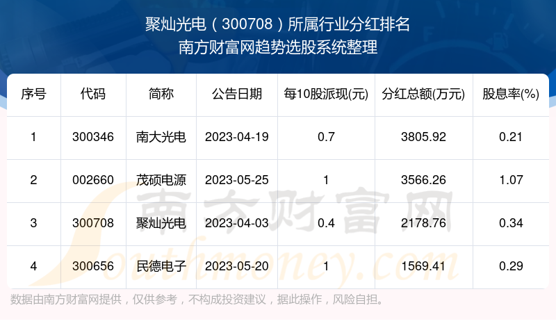 以上就是网络对配资软件 聚灿光电分红怎么样_300708所属行业股票分红排名查询的解读(https://www.youge168.com/news-pzhq/51166.html)希望可以帮助您。