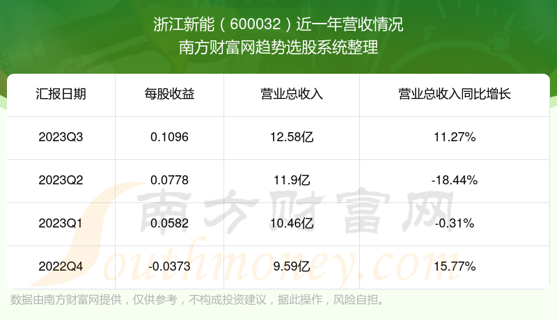 浙江新能股票近一年营收情况如下表: