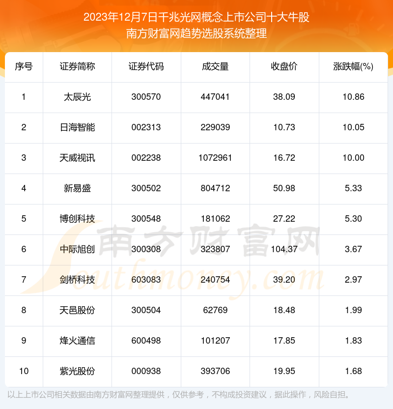 以上就是网络对1号配资 数据复盘:千兆光网概念上市公司十大牛股(2023年12月7日)的解读(https://www.youge168.com/news-pzhq/51327.html)希望可以帮助您。