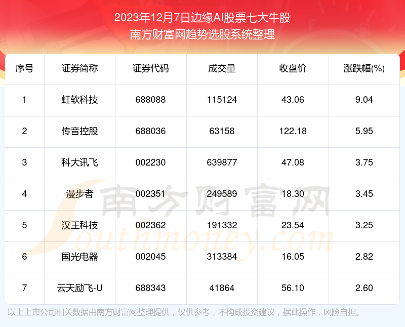 以上就是网络对正规股票配资平台 【数据复盘】边缘AI股票2023年12月7日七大牛股名单的解读(https://www.youge168.com/news-pzhq/51415.html)希望可以帮助您。