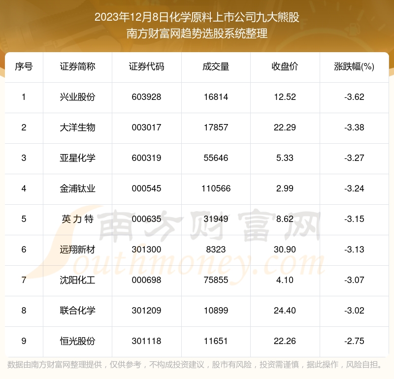 以上就是网络对配资平台 数据解盘|2023年12月8日化学原料上市公司九大熊股一览的解读(https://www.youge168.com/news-pzhq/51549.html)希望可以帮助您。