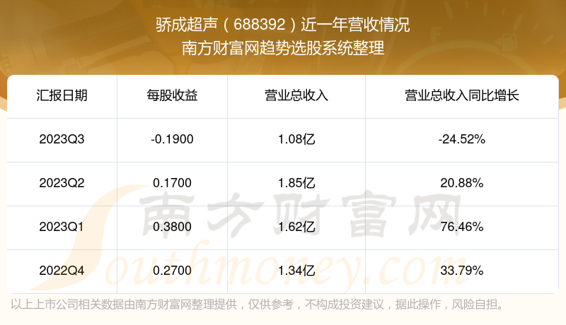 骄成超声股票近一年营收情况如下表: