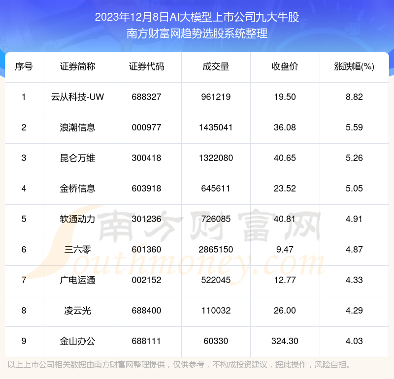 以上就是网络对股票怎么配资 数据解盘|2023年12月8日AI大模型上市公司九大牛股一览的解读(https://www.youge168.com/news-pzhq/51581.html)希望可以帮助您。