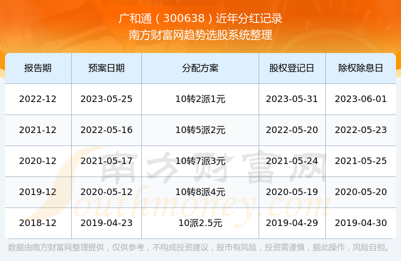 一、广和通(300638)股票分红记录