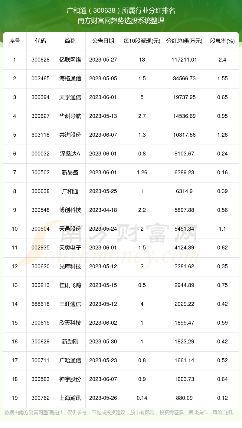 二、广和通300638行业分红排名