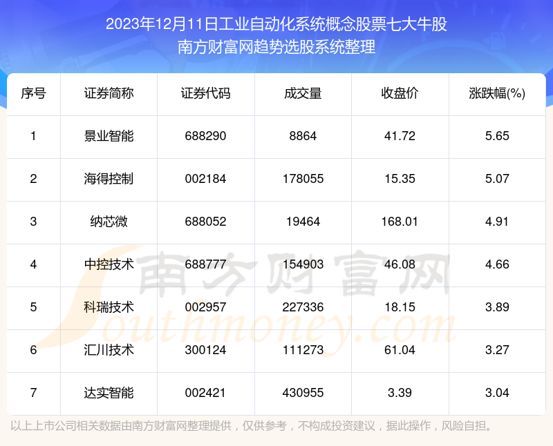 以上就是网络对南昌股票配资 2023年12月11日板块数据:工业自动化系统概念股票七大牛股的解读(https://www.youge168.com/news-pzhq/51797.html)希望可以帮助您。