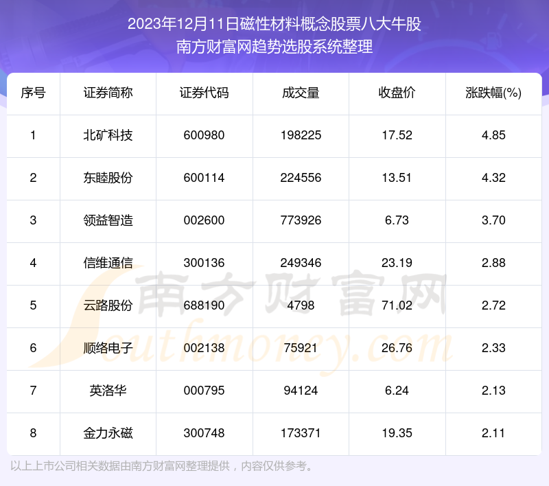 以上就是网络对南昌股票配资 2023年12月11日板块复盘:磁性材料概念股票八大牛股名单的解读(https://www.youge168.com/news-pzhq/51809.html)希望可以帮助您。