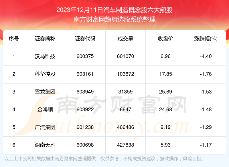 以上就是网络对配资之家 2023年12月11日盘后数据:汽车制造概念股六大熊股的解读(https://www.youge168.com/news-pzhq/51815.html)希望可以帮助您。