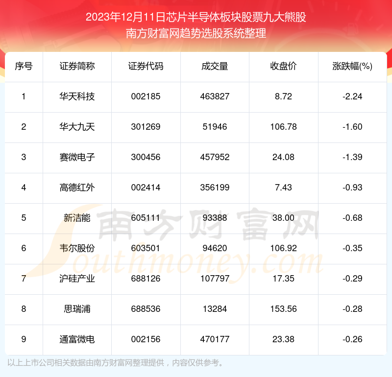 以上就是网络对国内股票配资 【数据复盘】芯片半导体板块股票2023年12月11日九大熊股名单的解读(https://www.youge168.com/news-pzhq/51824.html)希望可以帮助您。