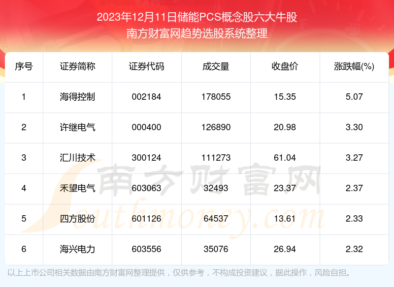 以上就是网络对股票配资炒股 板块复盘|2023年12月11日储能PCS概念股六大牛股名单的解读(https://www.youge168.com/news-pzhq/51827.html)希望可以帮助您。