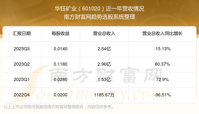 按照南方财富网趋势选股系统统计,该股所属板块为有色金属板块,该板块共有240只股票,华钰矿业2023第三季度营收在该板块中排名为第198名,该板块2023第三季度营收排名前十的股票如下表: