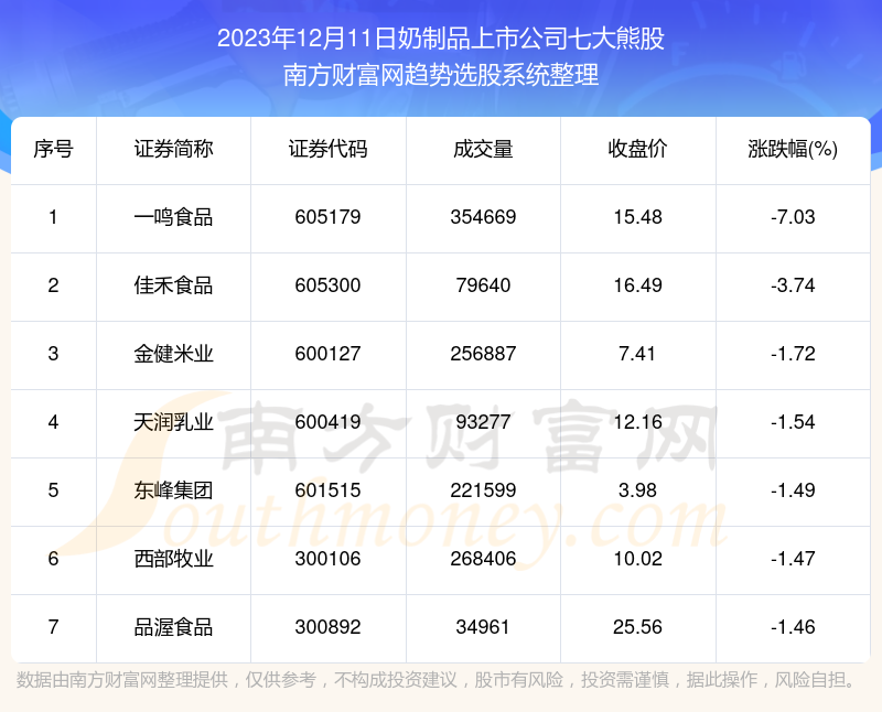 以上就是网络对南昌股票配资 【盘后整理】奶制品上市公司2023年12月11日七大熊股一览的解读(https://www.youge168.com/news-pzhq/51950.html)希望可以帮助您。