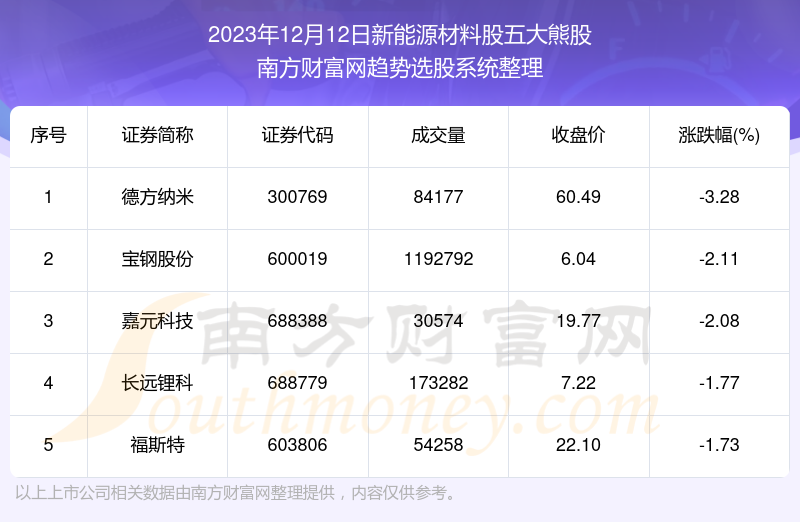 以上就是网络对线上股票配资 【盘后整理】新能源材料股2023年12月12日五大熊股一览的解读(https://www.youge168.com/news-pzhq/51988.html)希望可以帮助您。