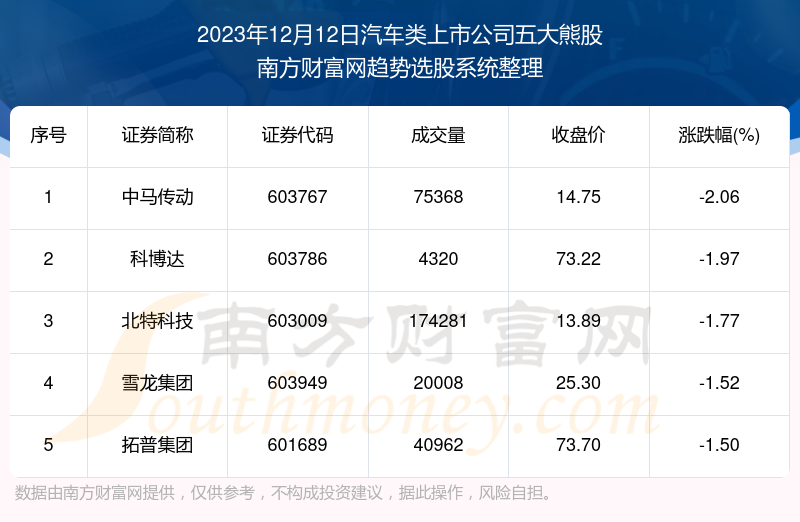 以上就是网络对在线配资公司 2023年12月12日板块复盘:汽车类上市公司五大熊股一览的解读(https://www.youge168.com/news-pzhq/51992.html)希望可以帮助您。